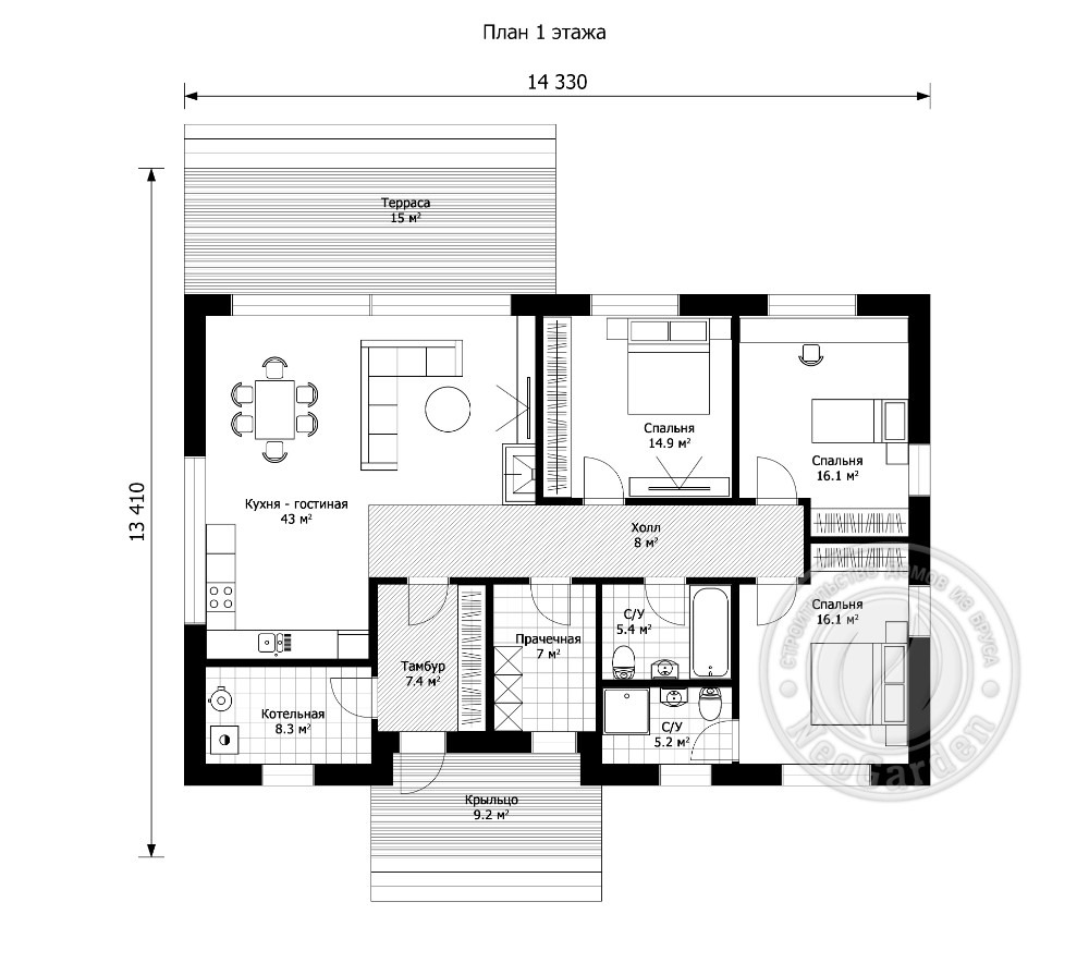 - Стены наружные: общая толщина 260мм с утеплением 200мм