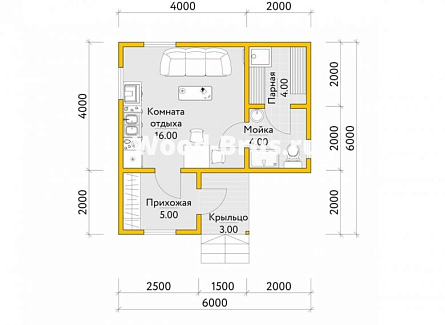 - Рубка наружных стен и внутренних перегородок осуществляется в "тёплый угол" (шип-паз).