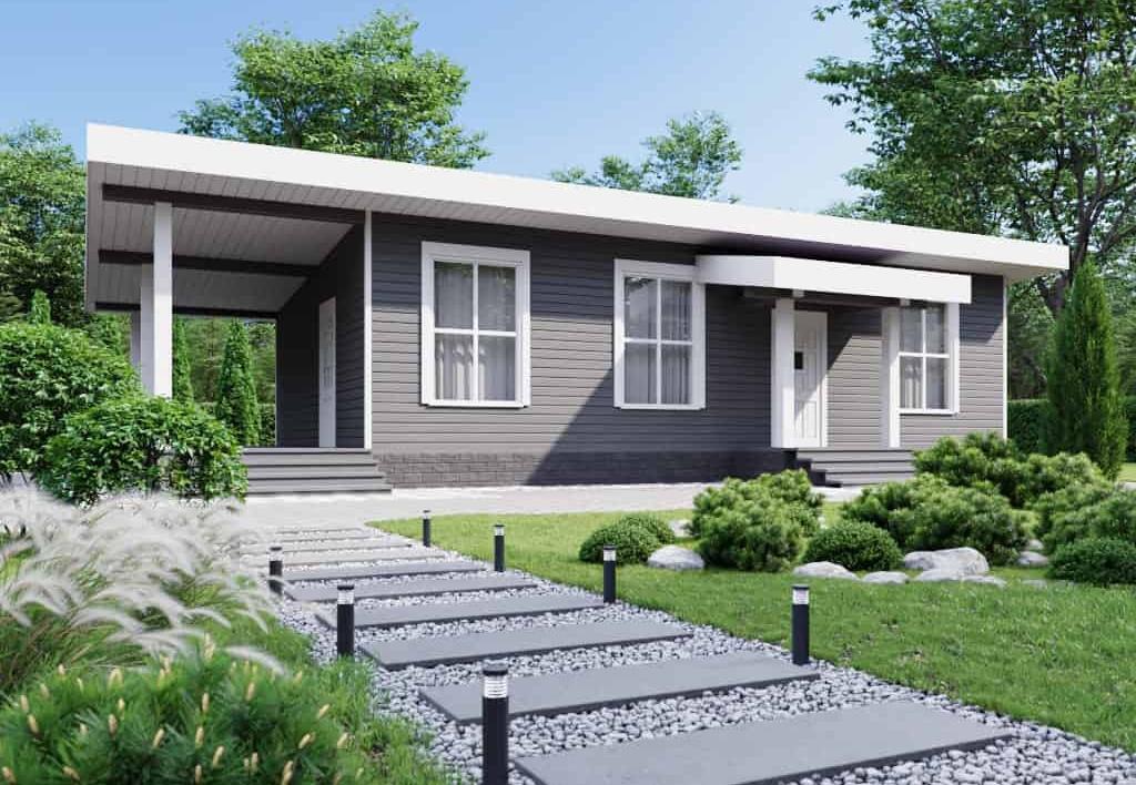 Проект одноэтажного дома Проект 3053 - каркасный дом-барнхаус с двумя спальнями и лофтом