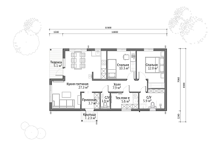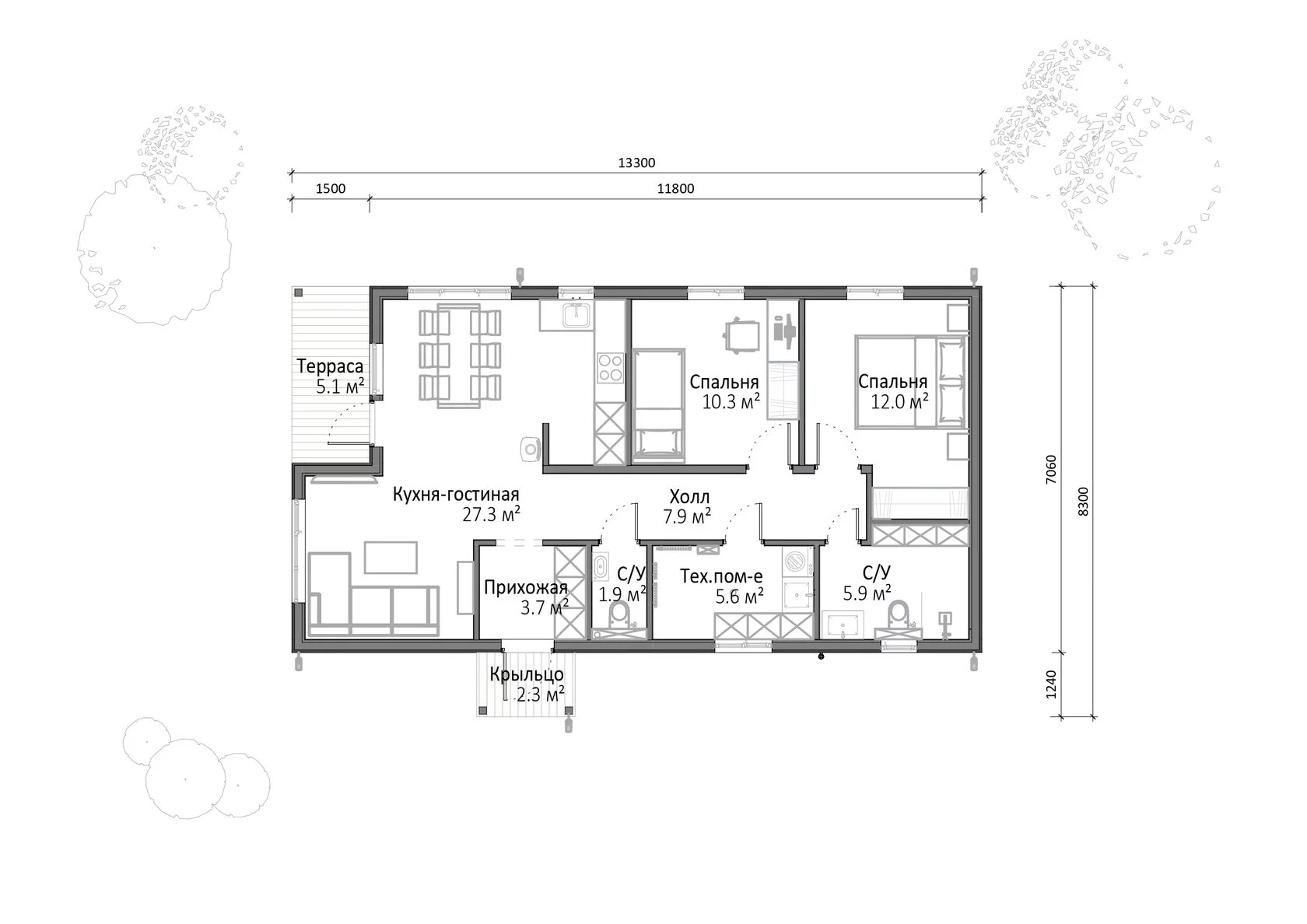 Компактный дом Хютте 80 площадью 81 м² с жилыми 68 м² — это уют и практичность. Каркасные стены создают легкую атмосферу, а металлочерепица на крыше гарантирует надежность. Две спальни и санузел делают его идеальным для небольшой семьи. Утеплённая шведская плита завершает образ этого добротного жилья.Характеристики