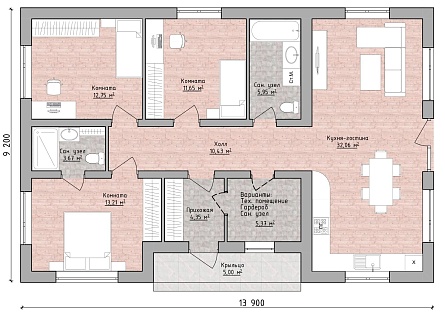 Проект одноэтажного дома одноэтажный 90 м2