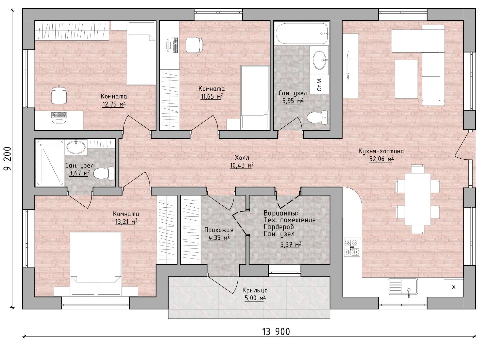 - Общая площадь: 105 м2