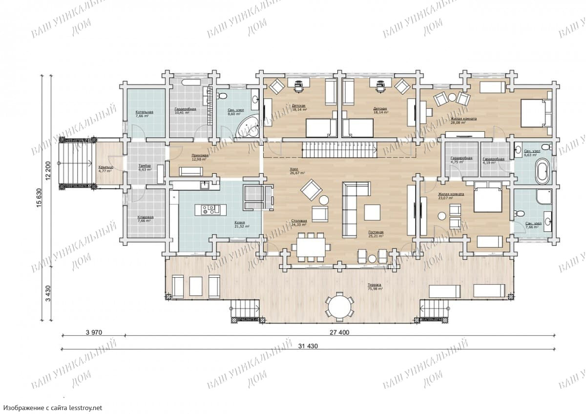Проект двухэтажного дома Дом на 2 семьи из клееного бруса Дуплекс