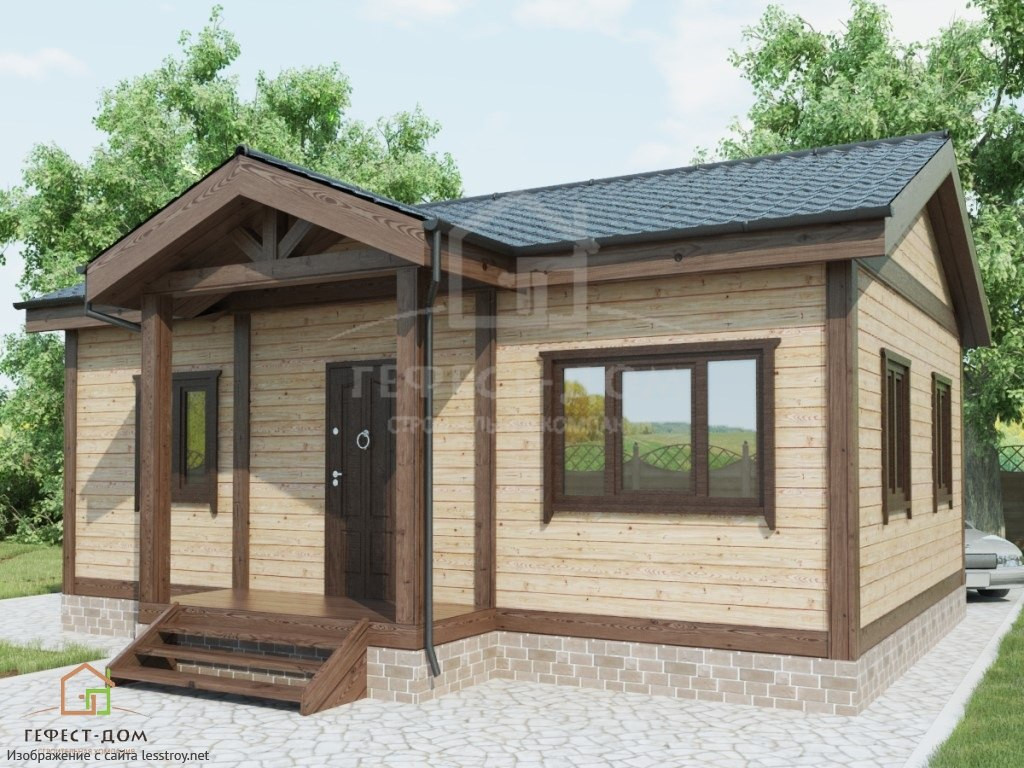 Проект одноэтажного дома Компактный дом из бруса 54м2