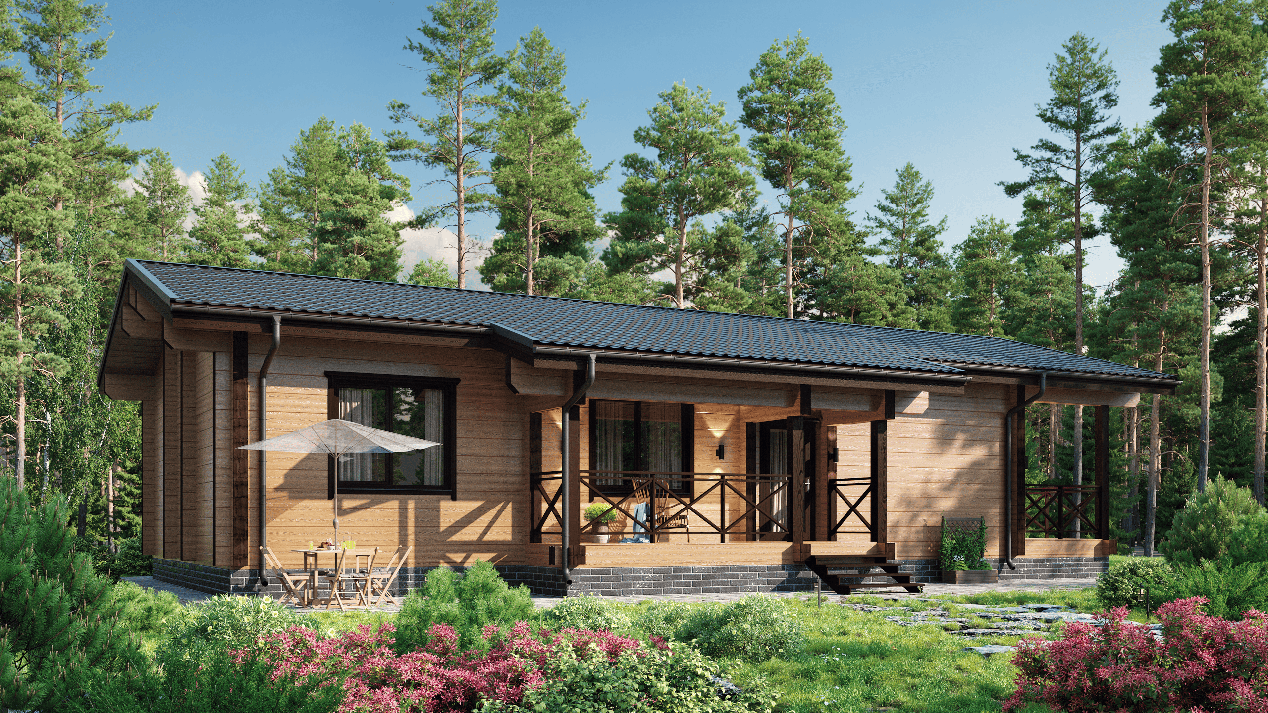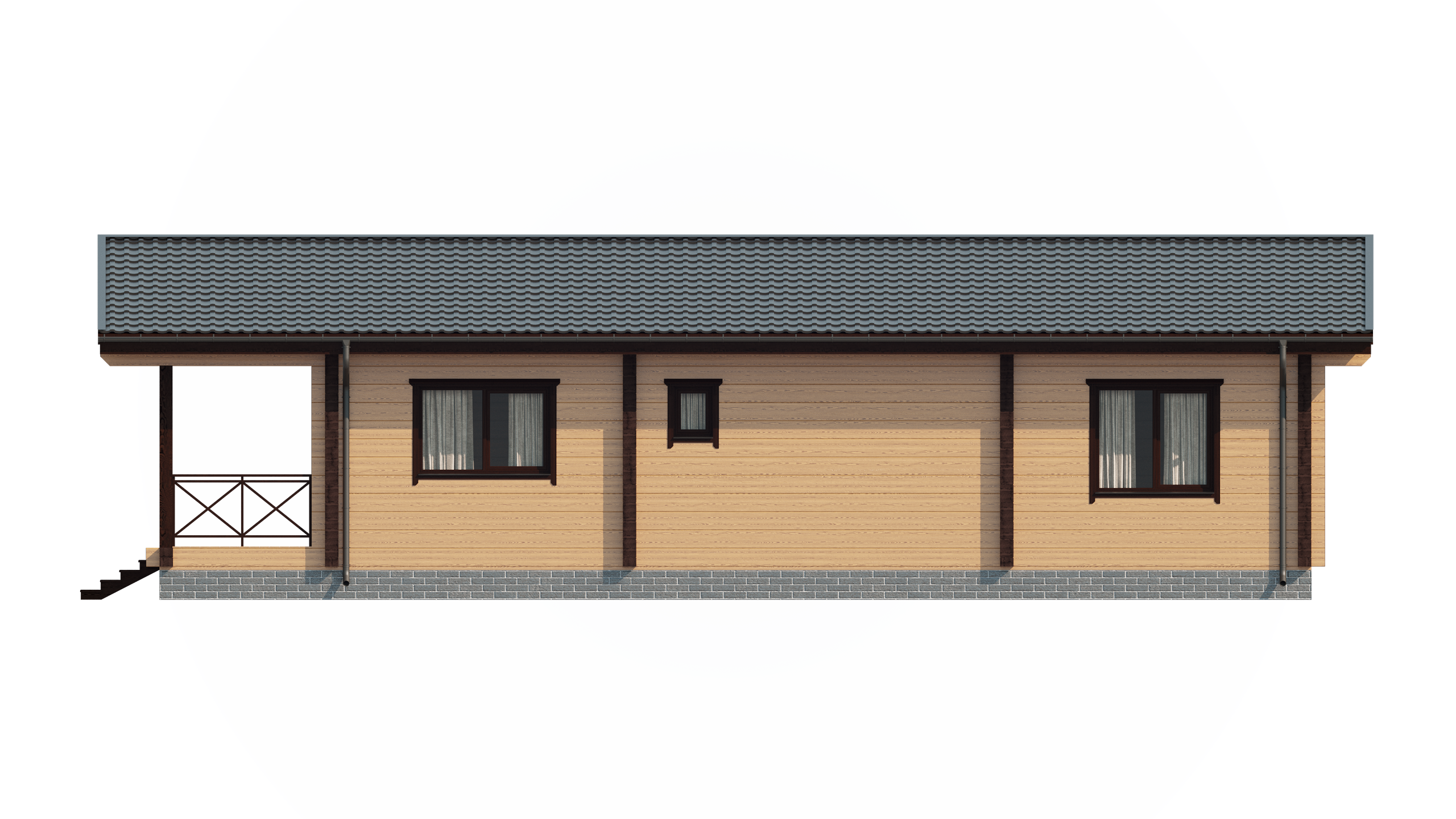 Стильный дом из бруса площадью 136 м² с тремя спальнями в стиле модерн подойдет для современной жизни. Один этаж и металлочерепичная кровля делают его практичным. Клееный брус обеспечивает тепло и надежность. Проект «Копенгаген» — это гармония дизайна и функциональности.Характеристики
