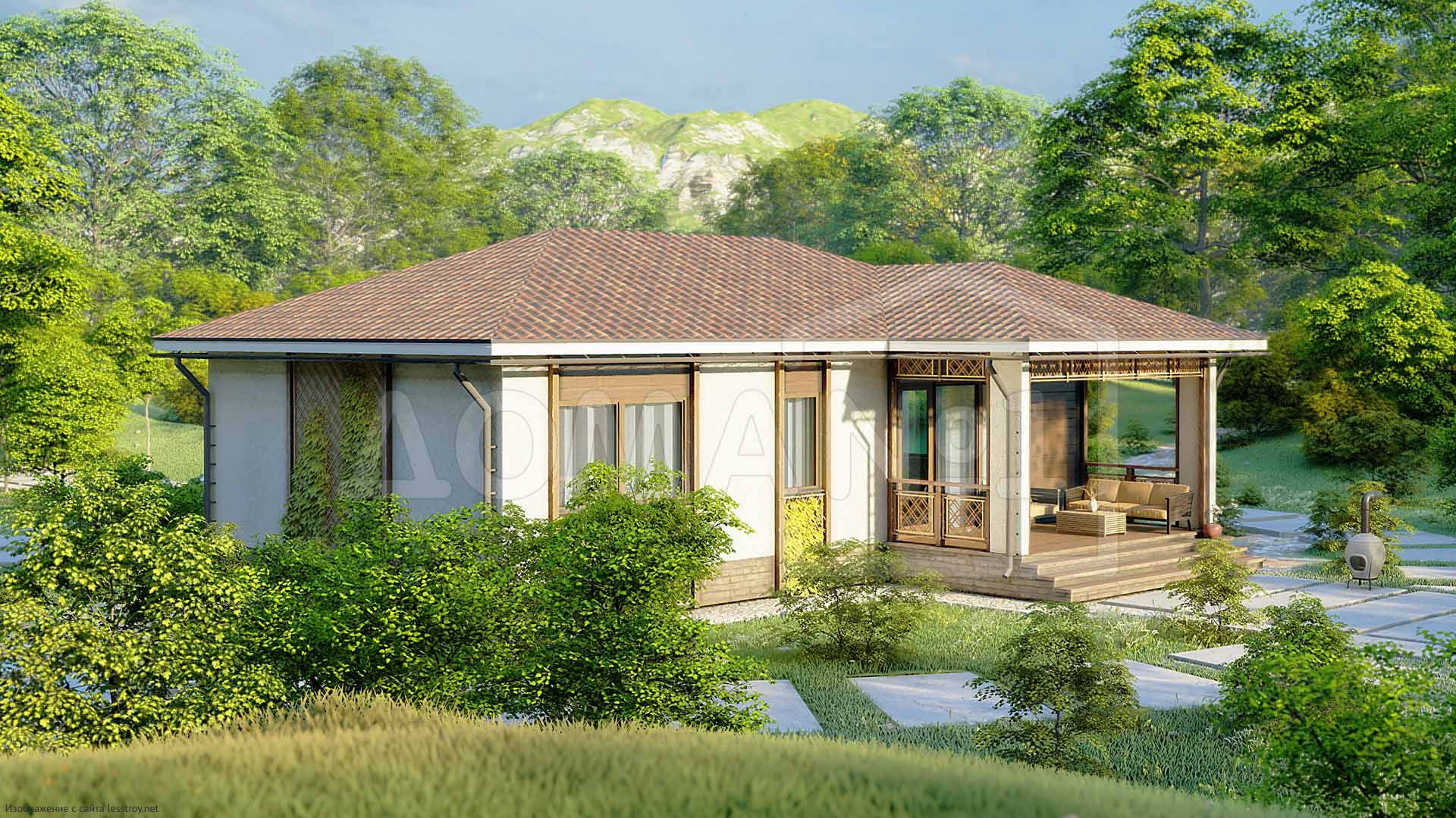 - Тип кровли: Дома с четырехскатной крышей (вальмовой)