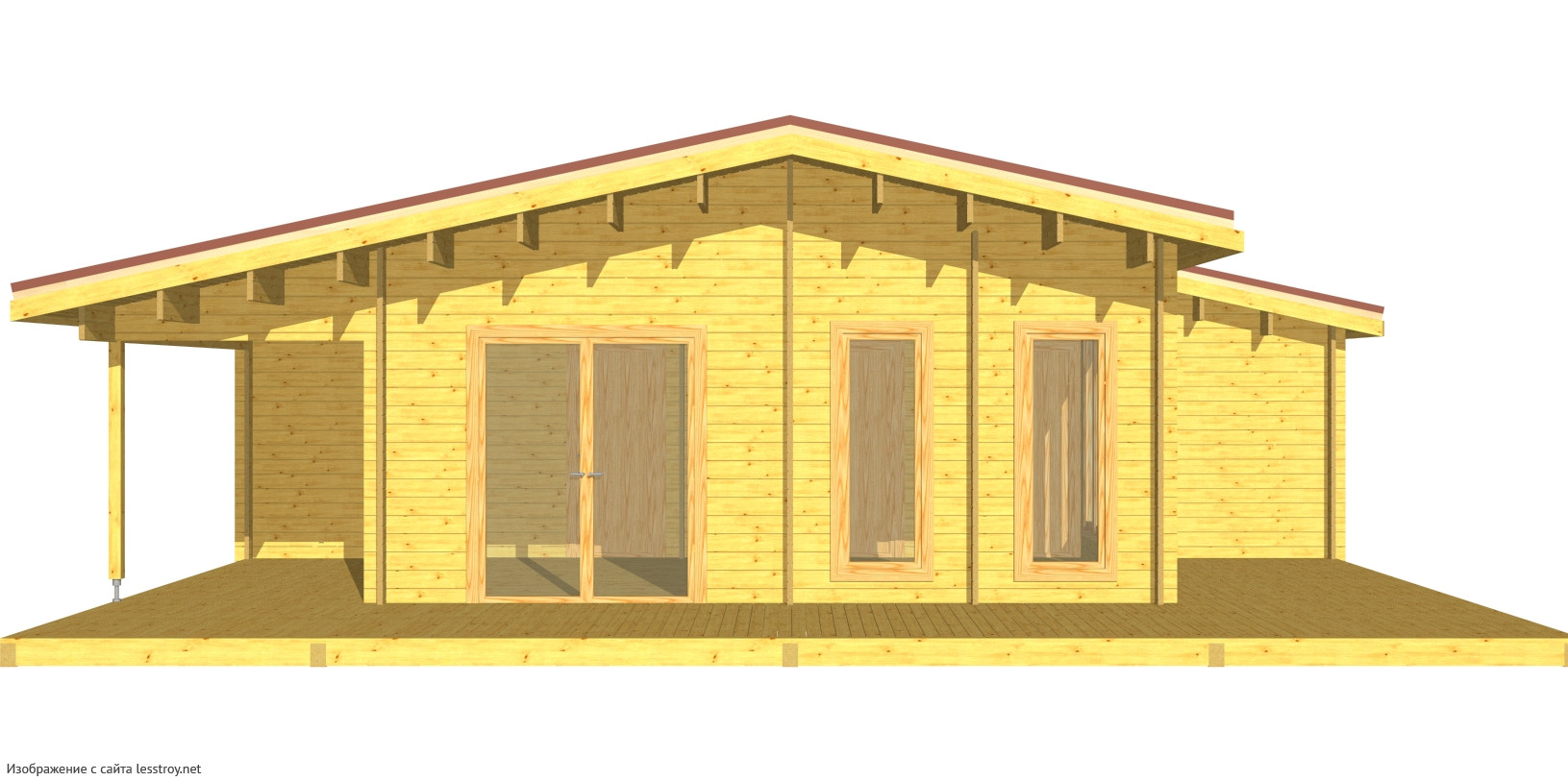 Проект одноэтажного дома Одноэтажный дом из профилированного бруса 8,5x12,2 м. с террасой