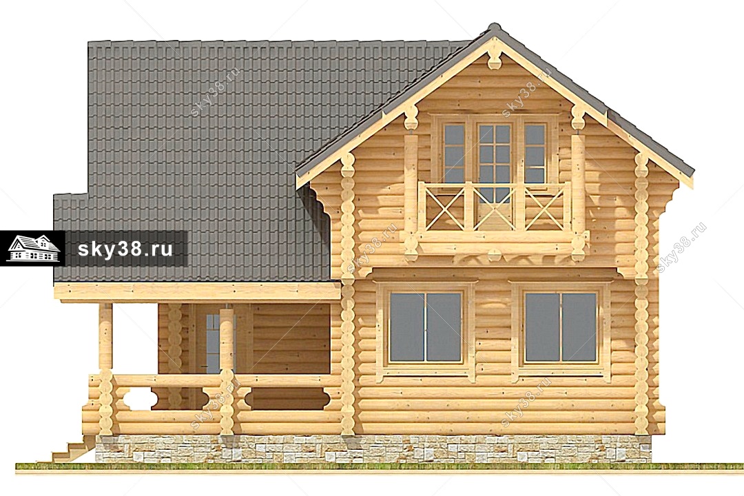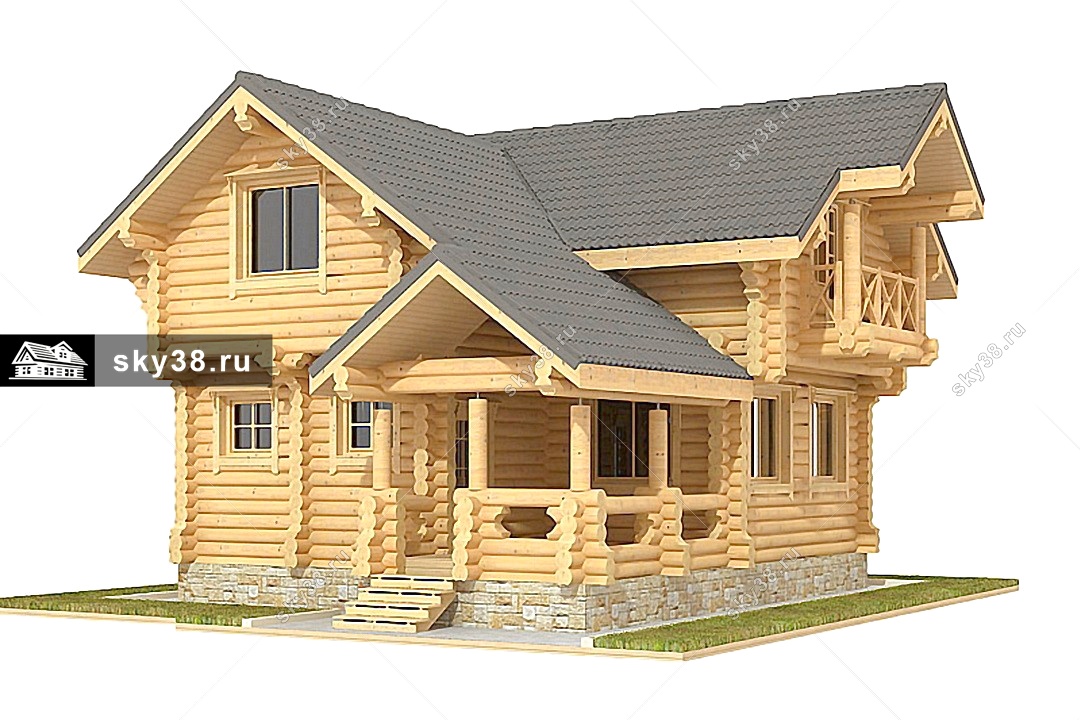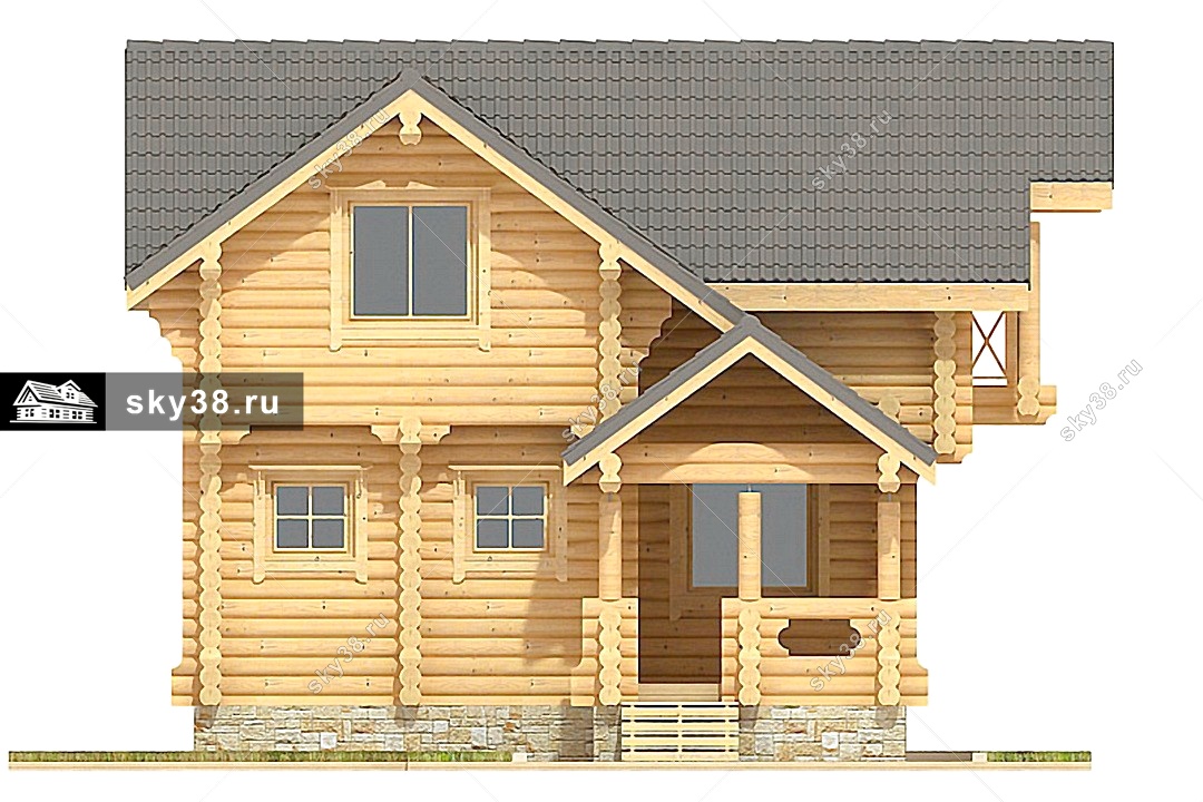 Проект двухэтажного дома Коттедж из калиброванного бревна Д-2-106