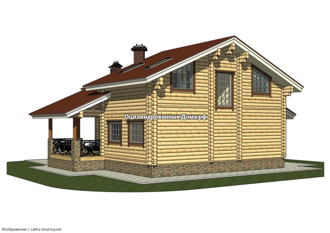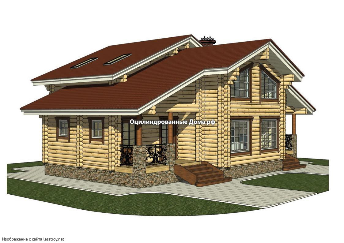 Проект двухэтажного дома Коттедж из оцилиндрованного бревна ОСТАШКОВ - 185м2 (10мХ13м)