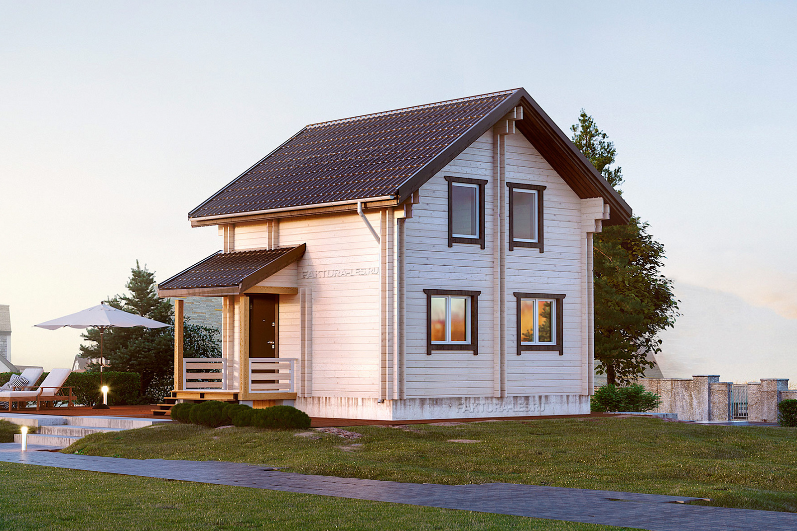 Миниатюрный дом из двойного бруса площадью 50 м² с одной спальней подходит для дачного отдыха. Металлочерепица делает его уютным.Характеристики
