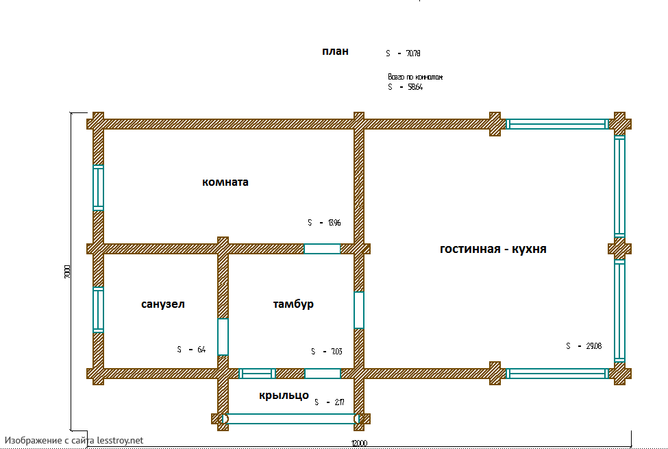 Проект одноэтажного дома Дом из оцилиндрованного бревна Д-69