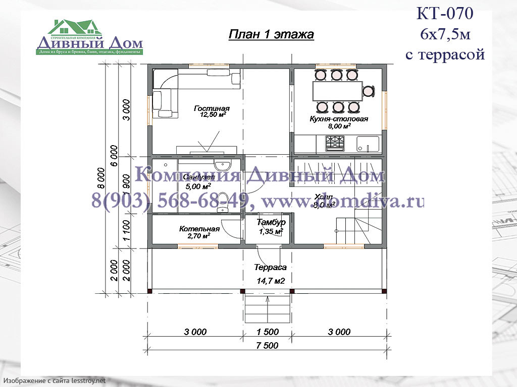 Традиционный двухэтажный дом площадью 140 м² из строганного бруса. Четыре уютные спальни под рубероидной крышей создают образ настоящего русского терема.Характеристики