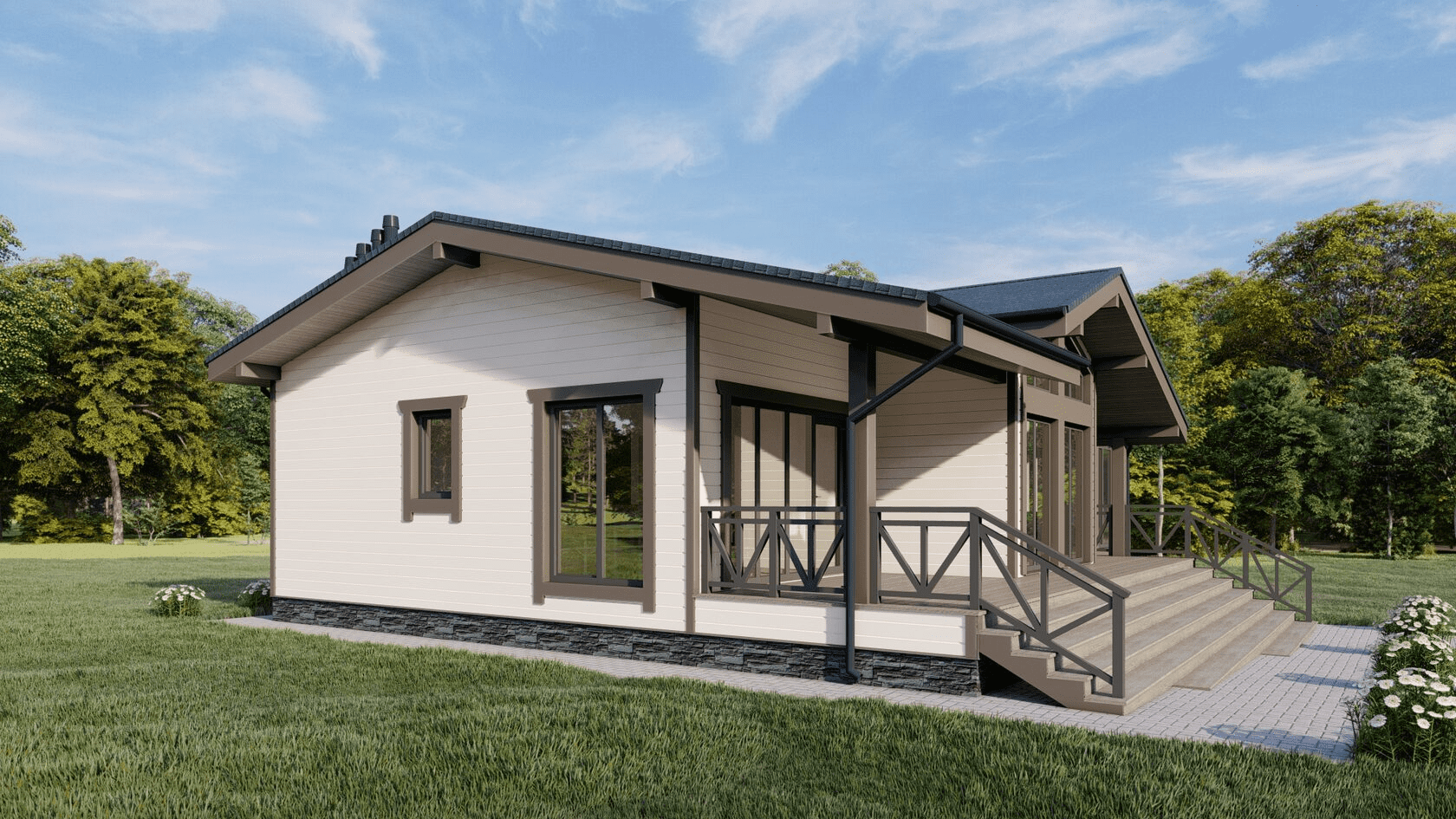 Проект одноэтажного дома Проект 7015 - каркасный дом по финской технологии