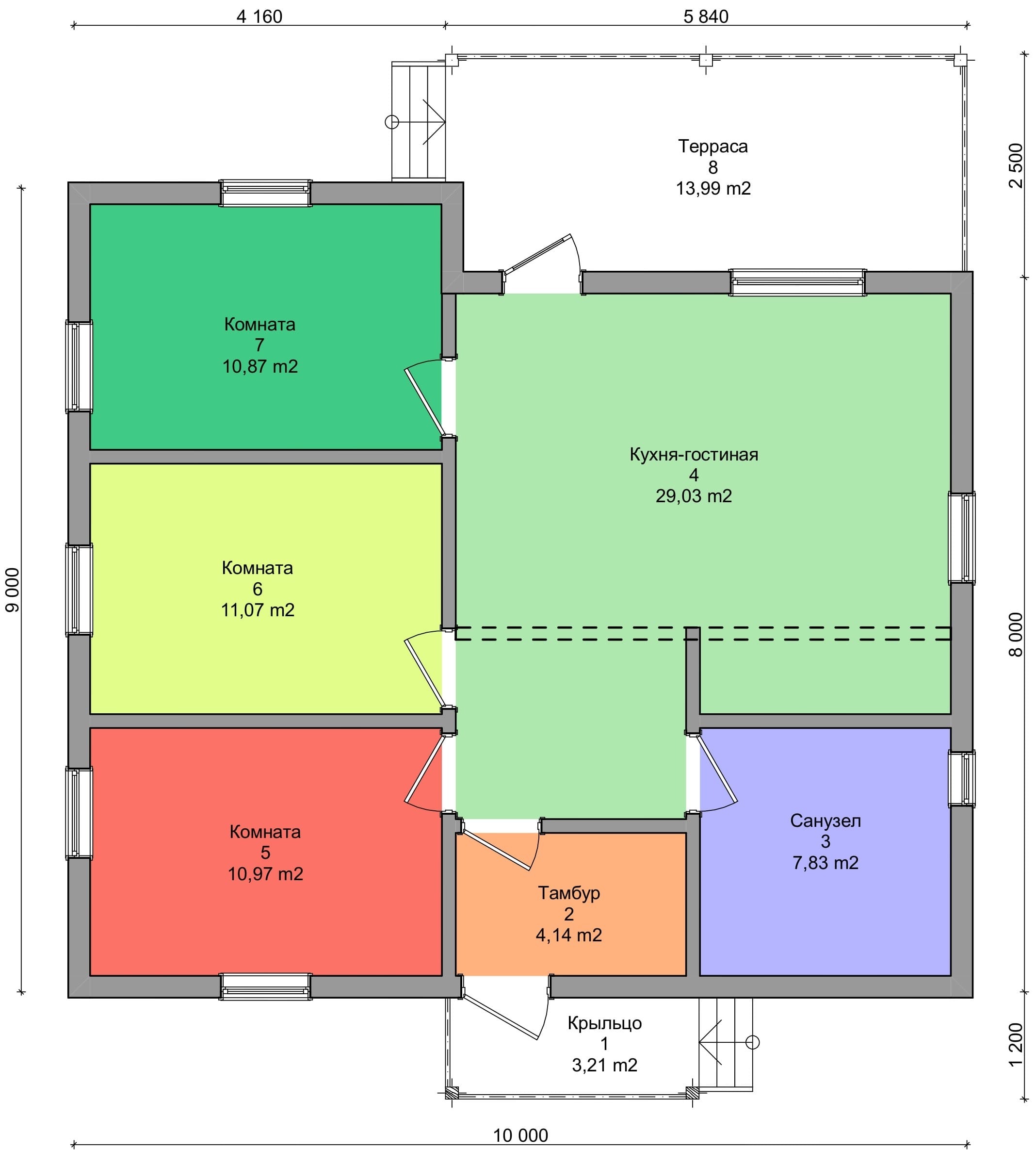 Просторный дом площадью 117 м² с жилой зоной 90 м² создан для семьи с двумя детьми. Три спальни и один санузел обеспечивают комфорт и удобство. Каркасная технология гарантирует тепло и энергоэффективность, а естественное освещение наполняет дом светом. Это место, где царит гармония и спокойствие.Характеристики
