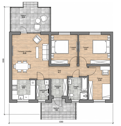 Проект одноэтажного дома одноэтажный 89,9 м2