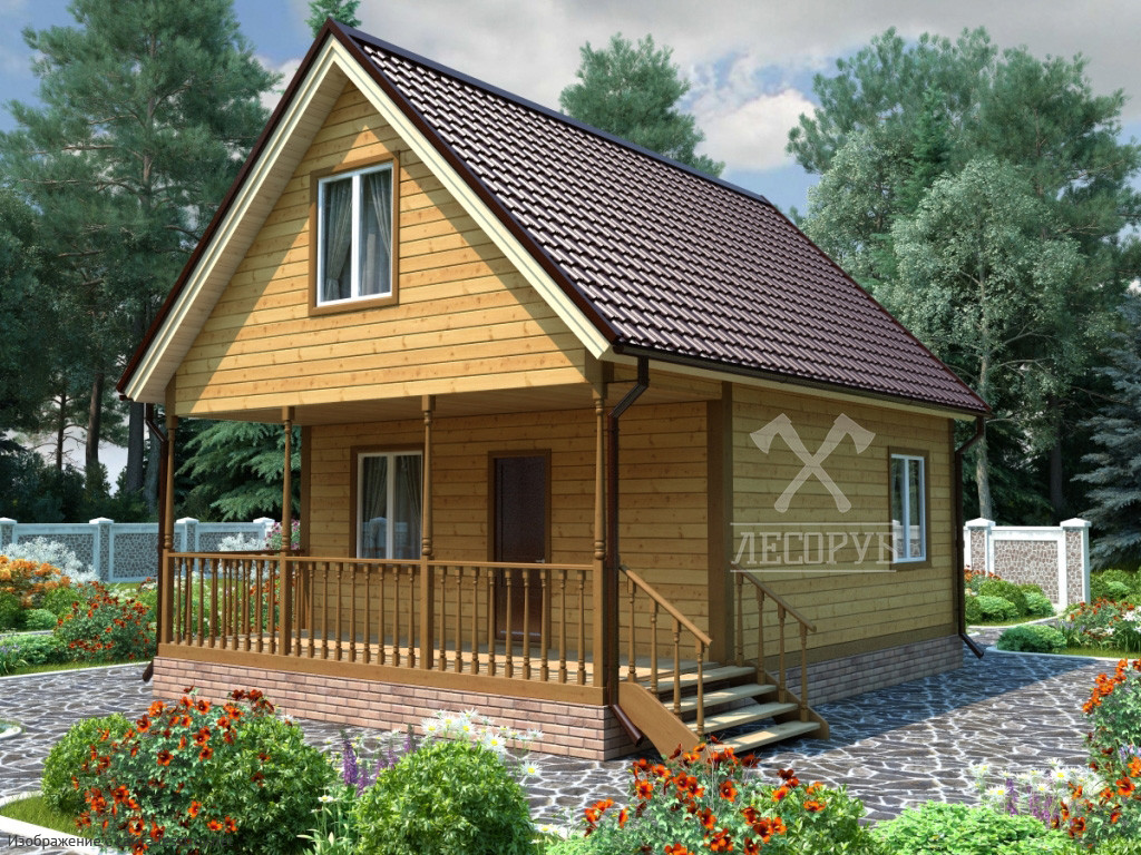 Проект двухэтажного дома Дом 6х8 м с мансардной крышей и кухней-гостиной