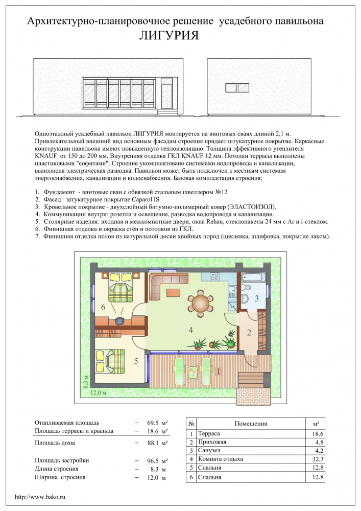 Проект одноэтажного дома Лигурия