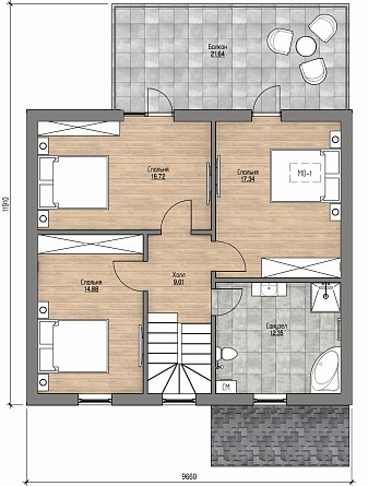 - Межэтажное перекрытие: Железобетонная монолитная плита 180 мм