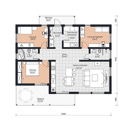 - Общая площадь: 125 м2