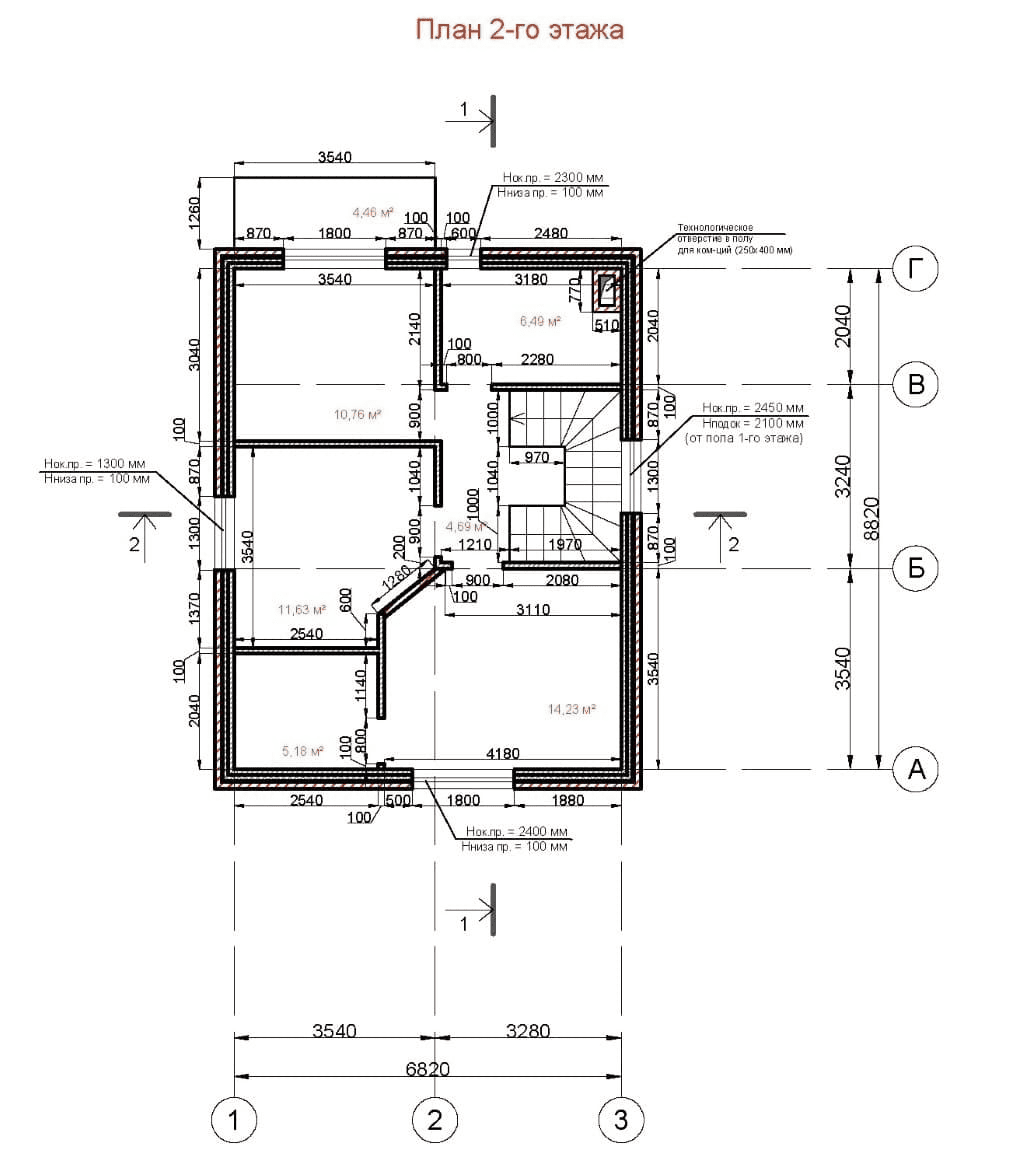 - Стены монолитные железо-бетонные. Высота 3 метра. Бетон М350 (В25).Высота стен второго этажа1,5-3м (режутся кровельными скатами)