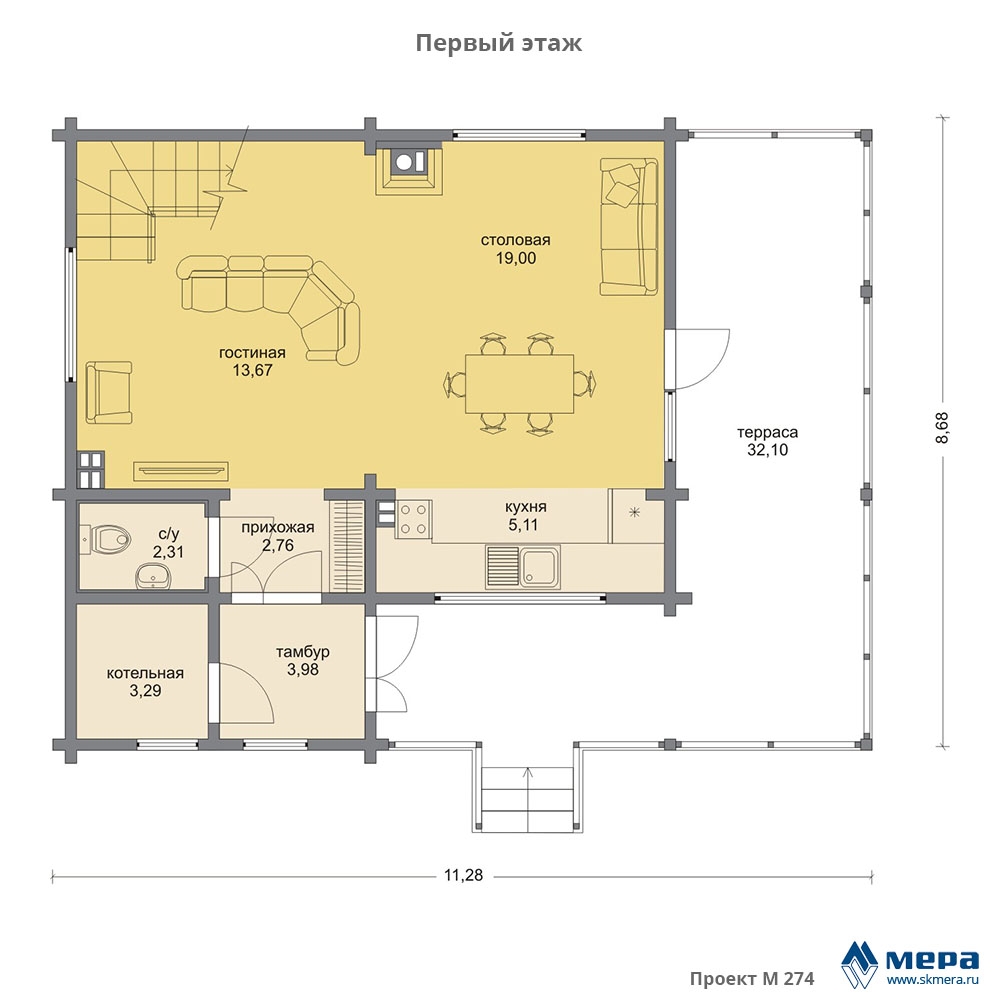 Двухэтажный 117-метровый дом из клееного бруса с мансардной крышей. Три солнечные спальни и битумная черепица создают образ идеального семейного гнезда.Характеристики