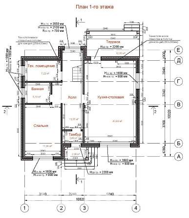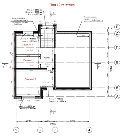 - Стены монолитные железо-бетонные. Высота 3 метра. Бетон М350 (В25).Высота стен второго этажа1,5-3м (режутся кровельными скатами)