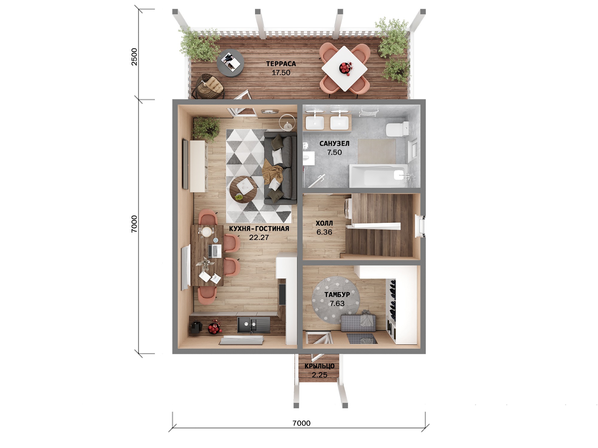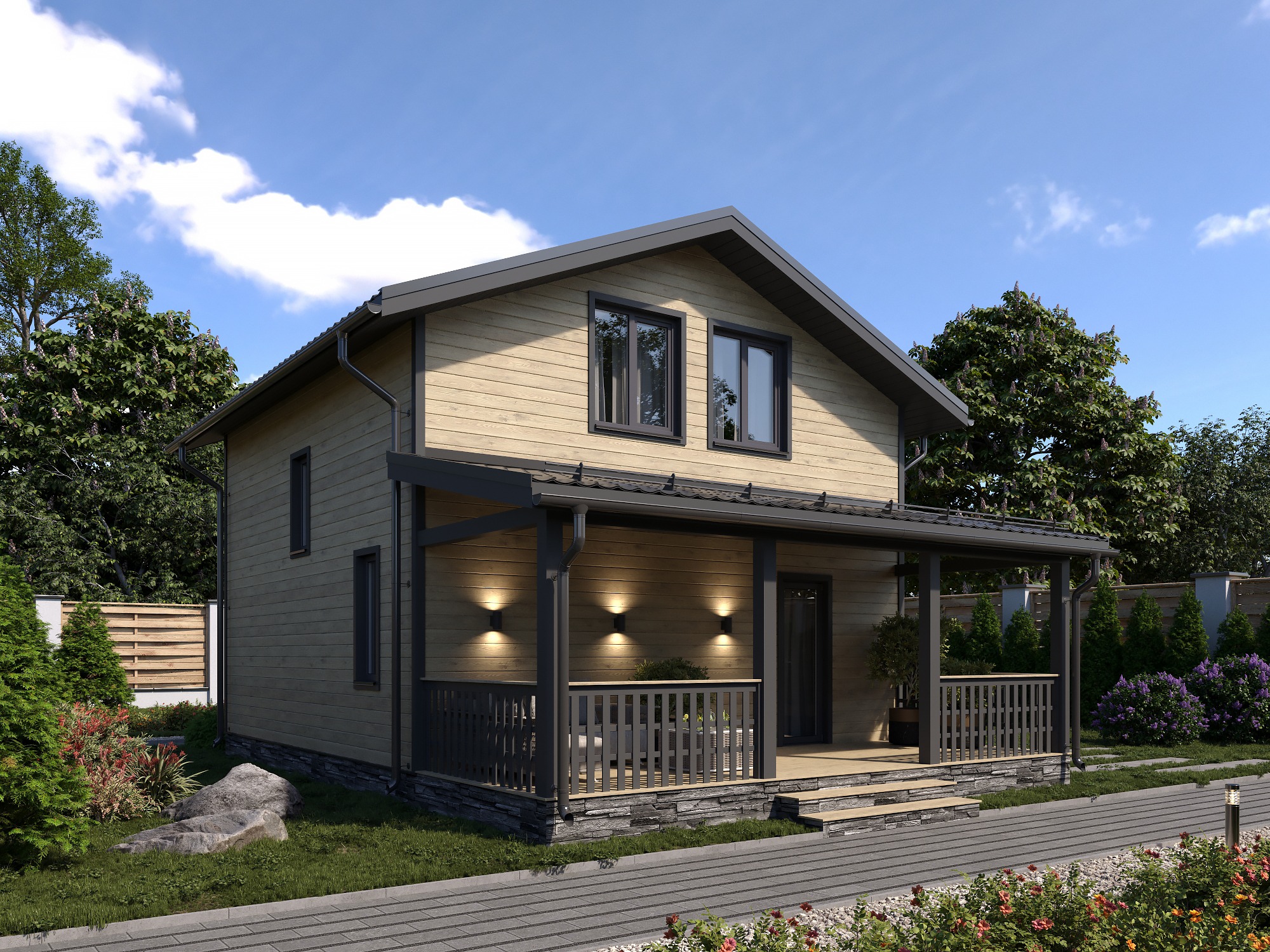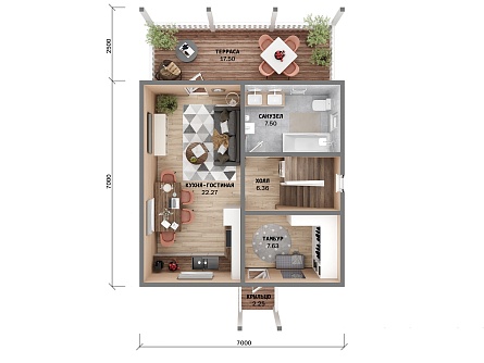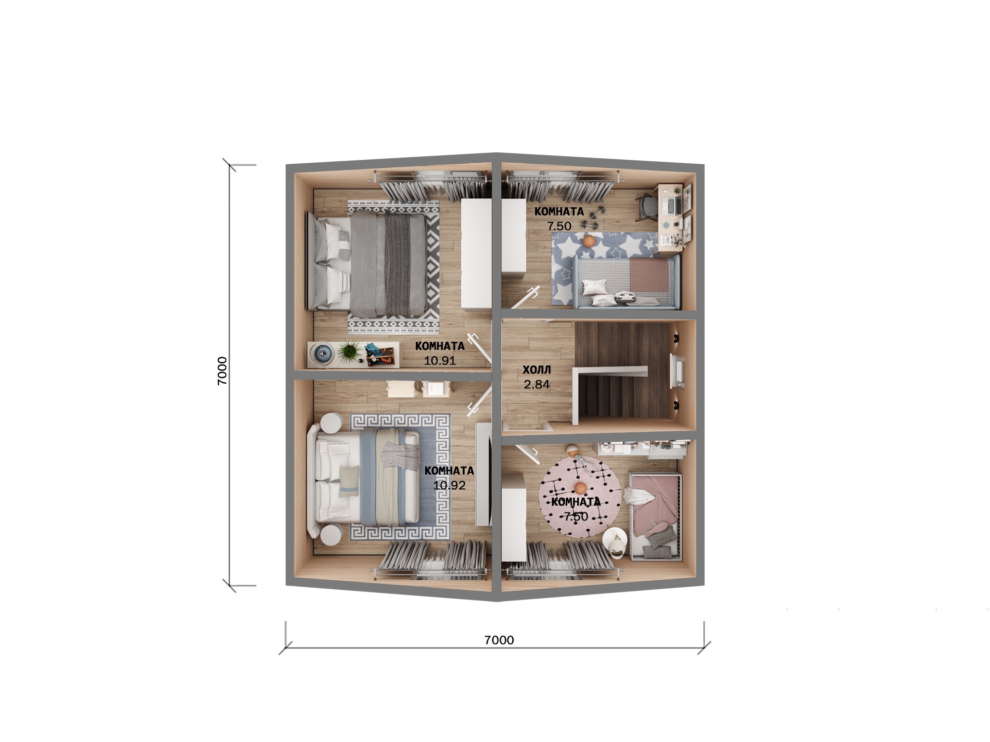 Проект двухэтажного дома Мансардия 7x7