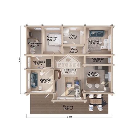 - Тип кровли: Дома с четырехскатной крышей (вальмовой)