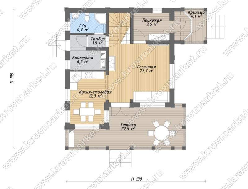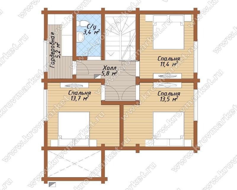 - 2 этаж: Оцилиндрованное бревно 240 мм