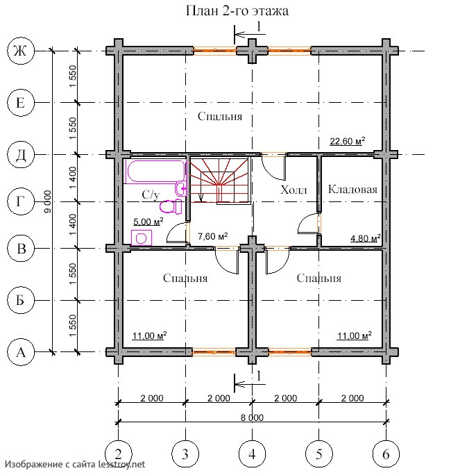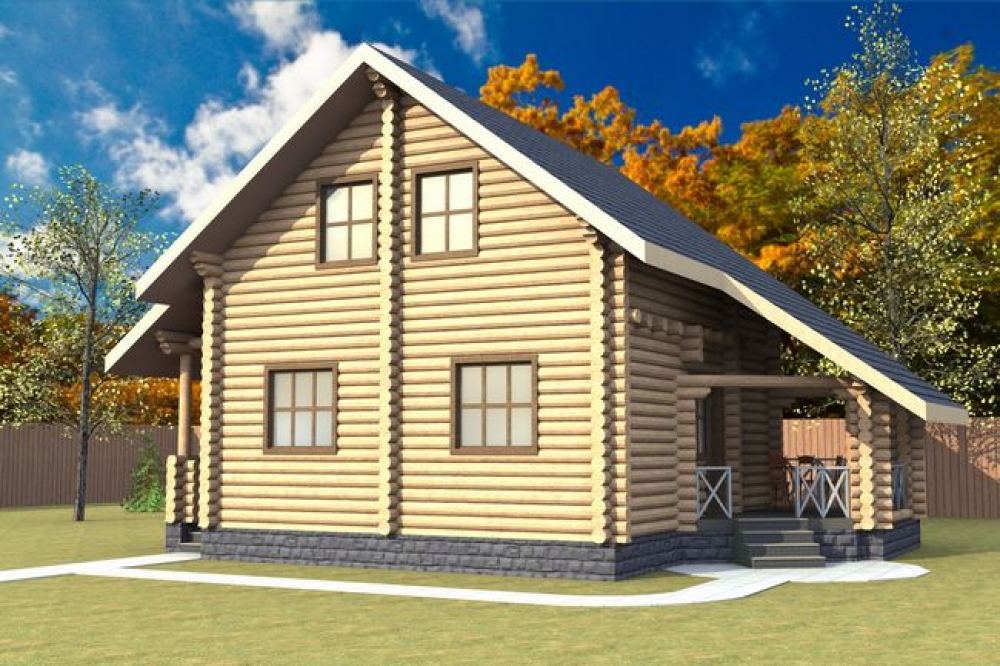 Проект двухэтажного дома Коттедж из оцилиндрованного бревна. Проект Ветрово.