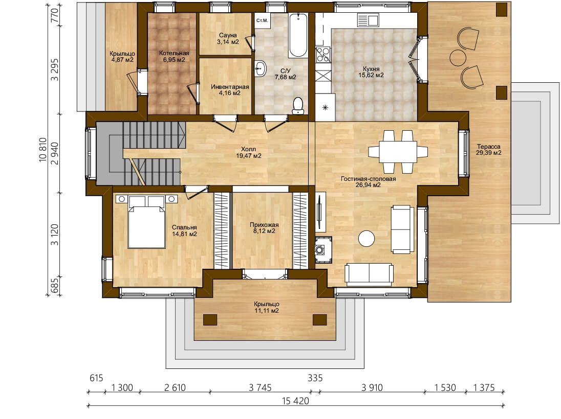 Архитектура, которая говорит без слов: Ты дома. Даже при 300 м² пространство не теряет своей гармонии. 207 м² жилого пространства — разумное решение для повседневной жизни. Каждый член семьи оценит наличие 3 санузла. Материал кровли — битумная черепица, что добавляет зданию индивидуальность. Среди преимуществ — мастер-спальня. Фундамент обеспечивает надежность и долговечность конструкции.Материалы и перечень работ