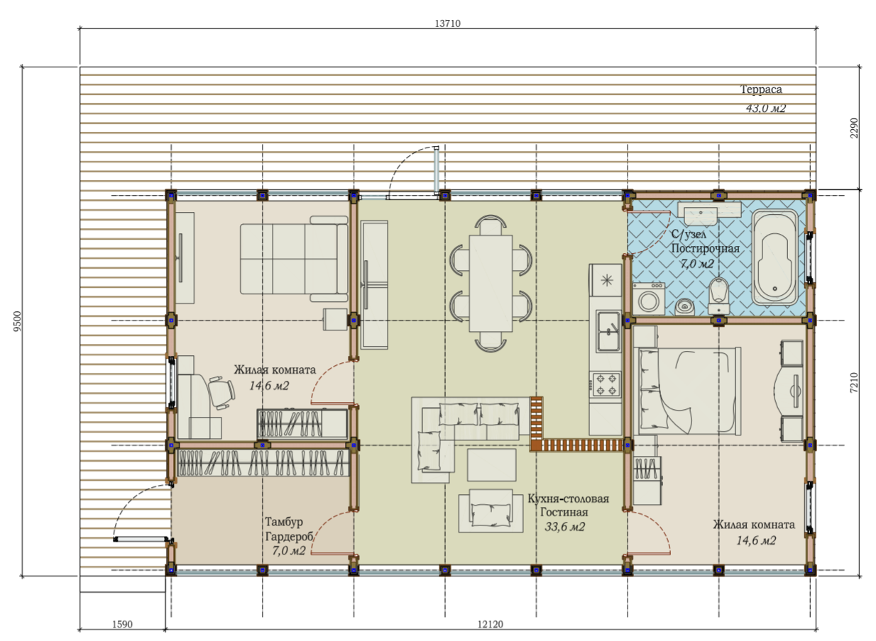 - Жилая площадь: 70 м2