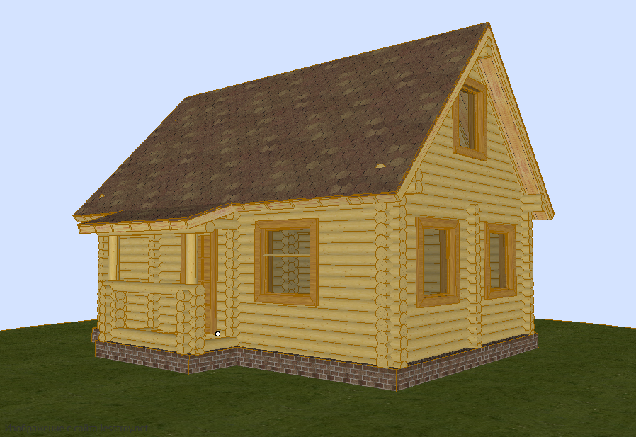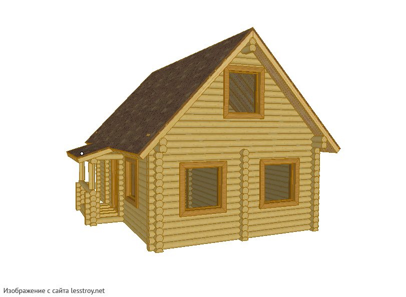 Проект двухэтажного дома Дом с мансардой из оцилиндрованного бревна СКАЗКА - 78м2 (7м х 5,5м)