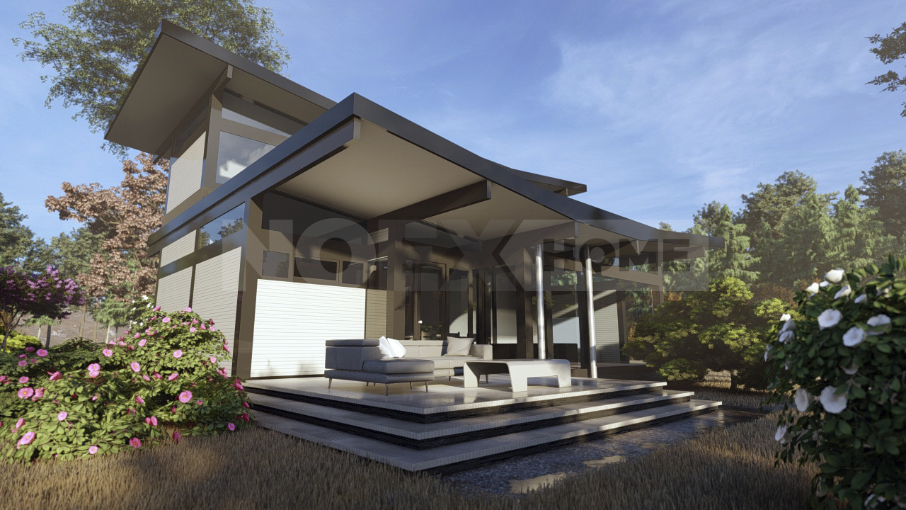 - Отделка кровли - металлочерепица 0,5мм со всеми доборными элементами или специальный пирог для плоской кровли,, металлическая водосточная система, подшив свесов имитацией бруса, окрашенным в заводских условиях, или металлическими софитами на выбор.