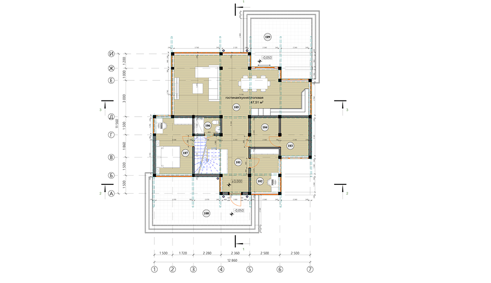 Дом НЕО площадью 223 м² с жилыми 187 м² — воплощение стиля и функциональности. Брус в стенах создает теплую атмосферу, а металлочерепица на крыше гарантирует защиту. Три спальни и два санузла делают его идеальным для семьи. Вариативный фундамент завершает образ этого современного жилья.Характеристики