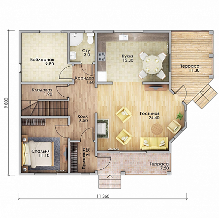 - стропильные фермы из строганной доски (сосна, ель) камерной сушки;