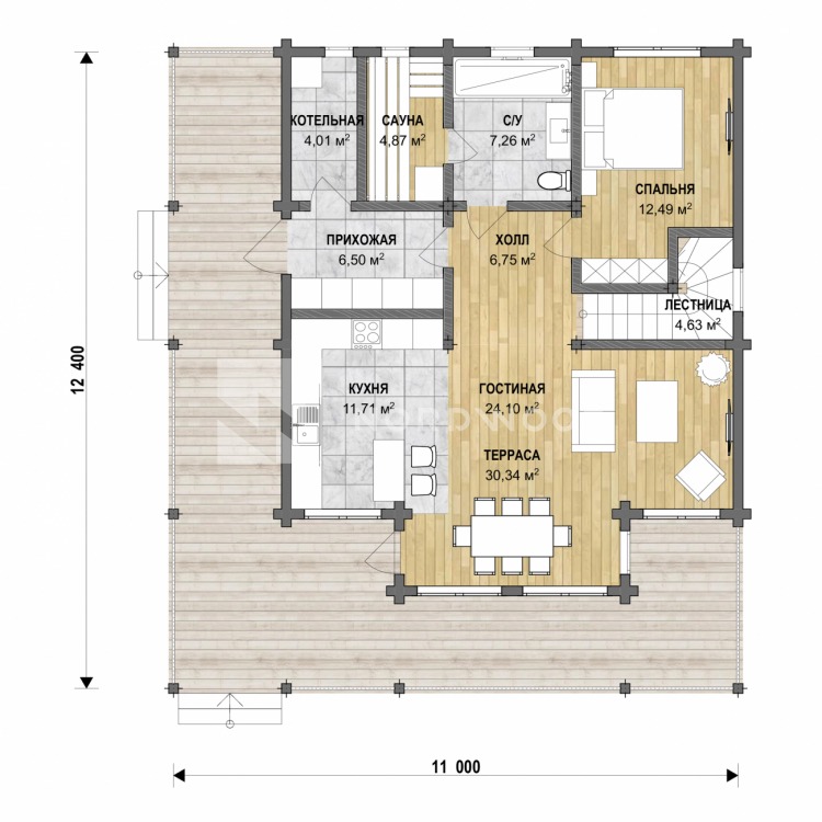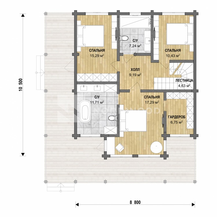- Брус клееный стеновой производства NORDWOOD, сечение 185х185(h), финский профиль бруса