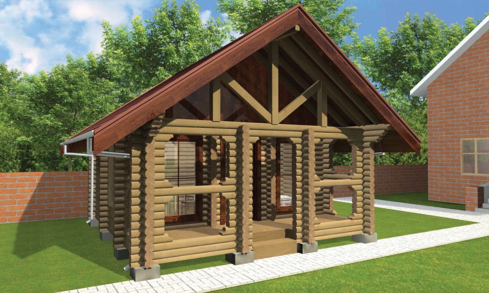 Проект двухэтажного дома Дом 6х7 из оцилиндрованного бревна ДБ-14