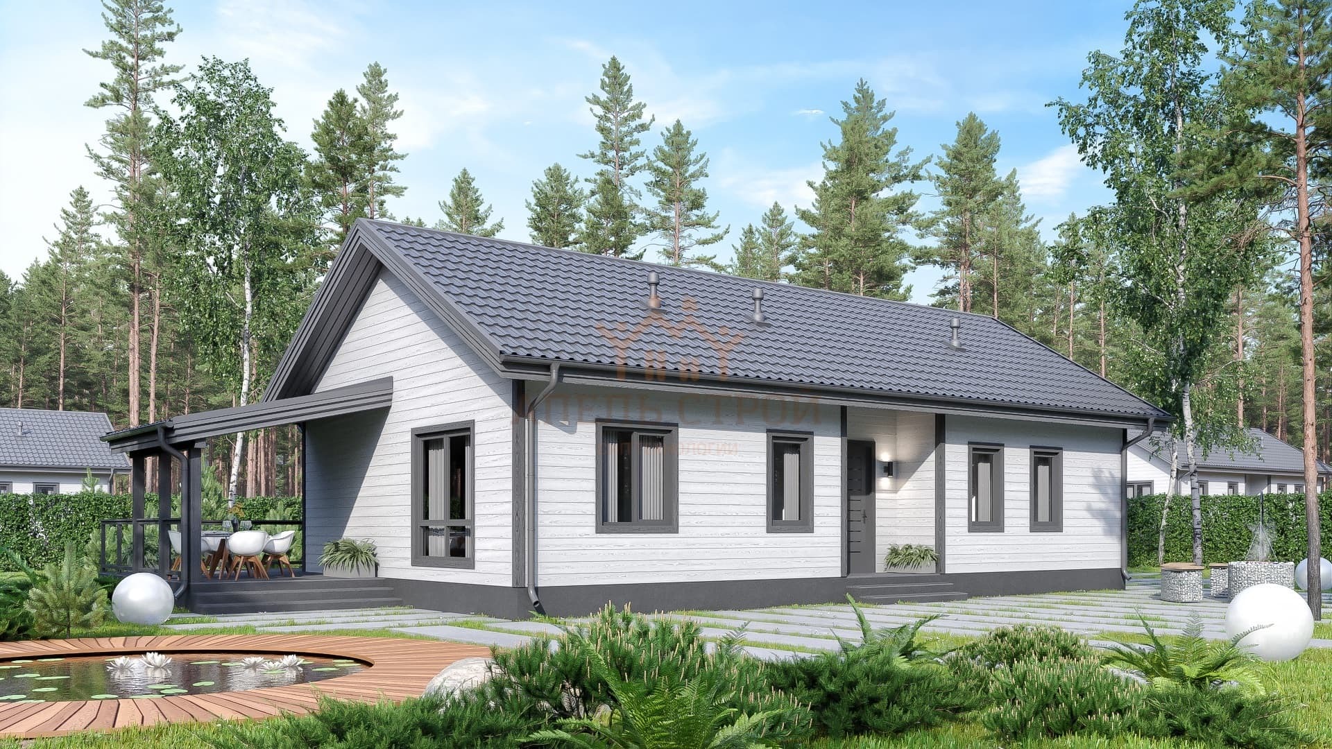Проект одноэтажного дома Каркасный дом серии Сакура Тай базовая комплектация ПМЖ