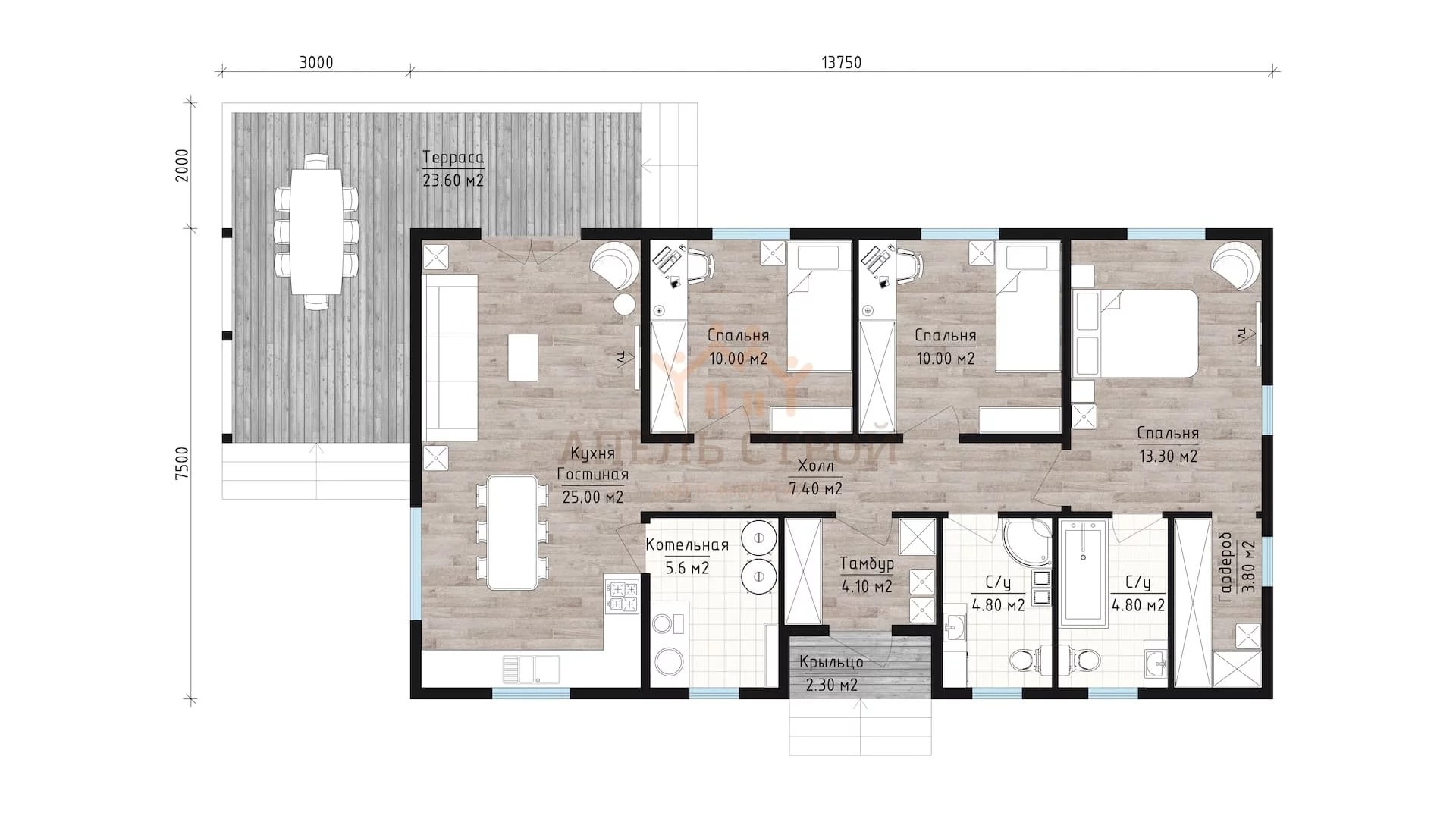 Проект одноэтажного дома ОД-103.01