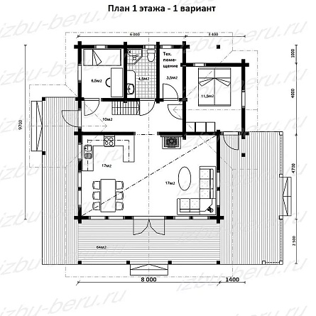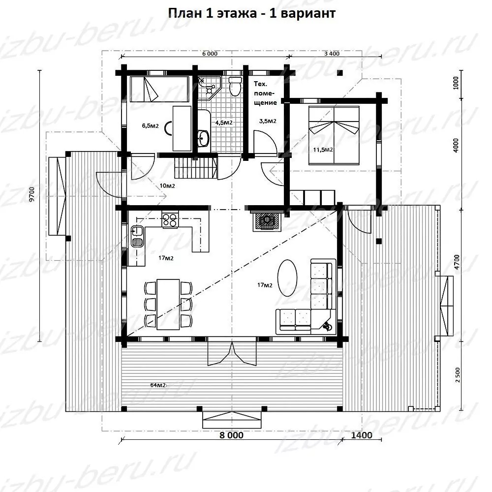 - Комплект балок перекрытия (брус) 100х200х6000 мм;