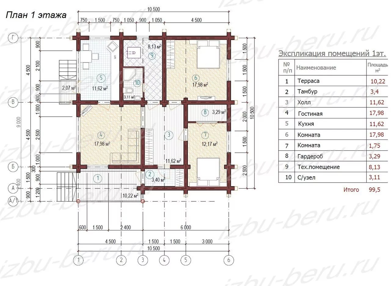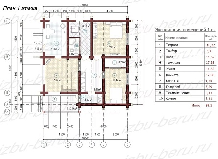 - Комплект балок перекрытия (брус) 100х200х6000 мм;