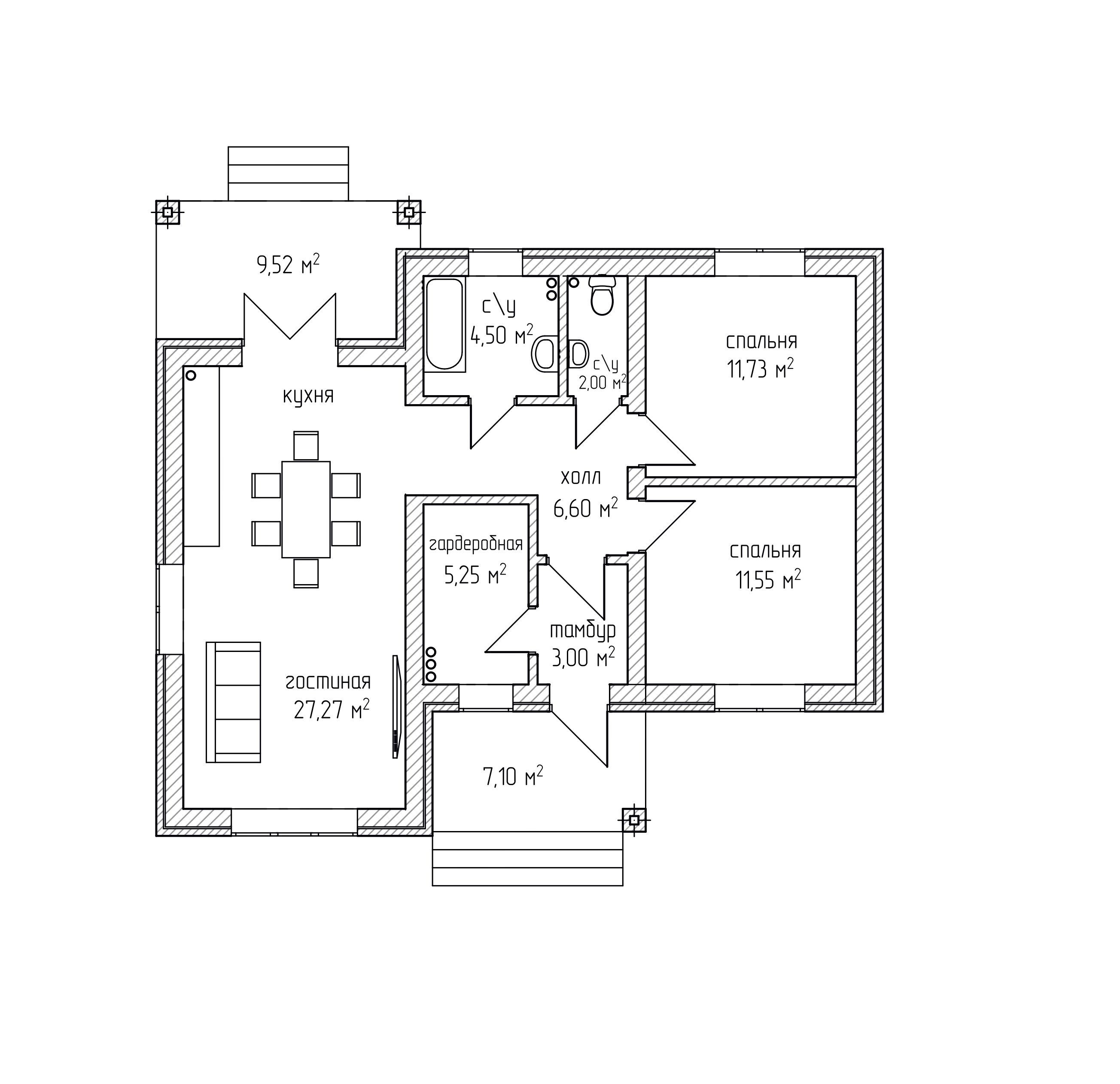 - Тип кровли: Дома с четырехскатной крышей (вальмовой)