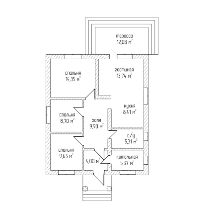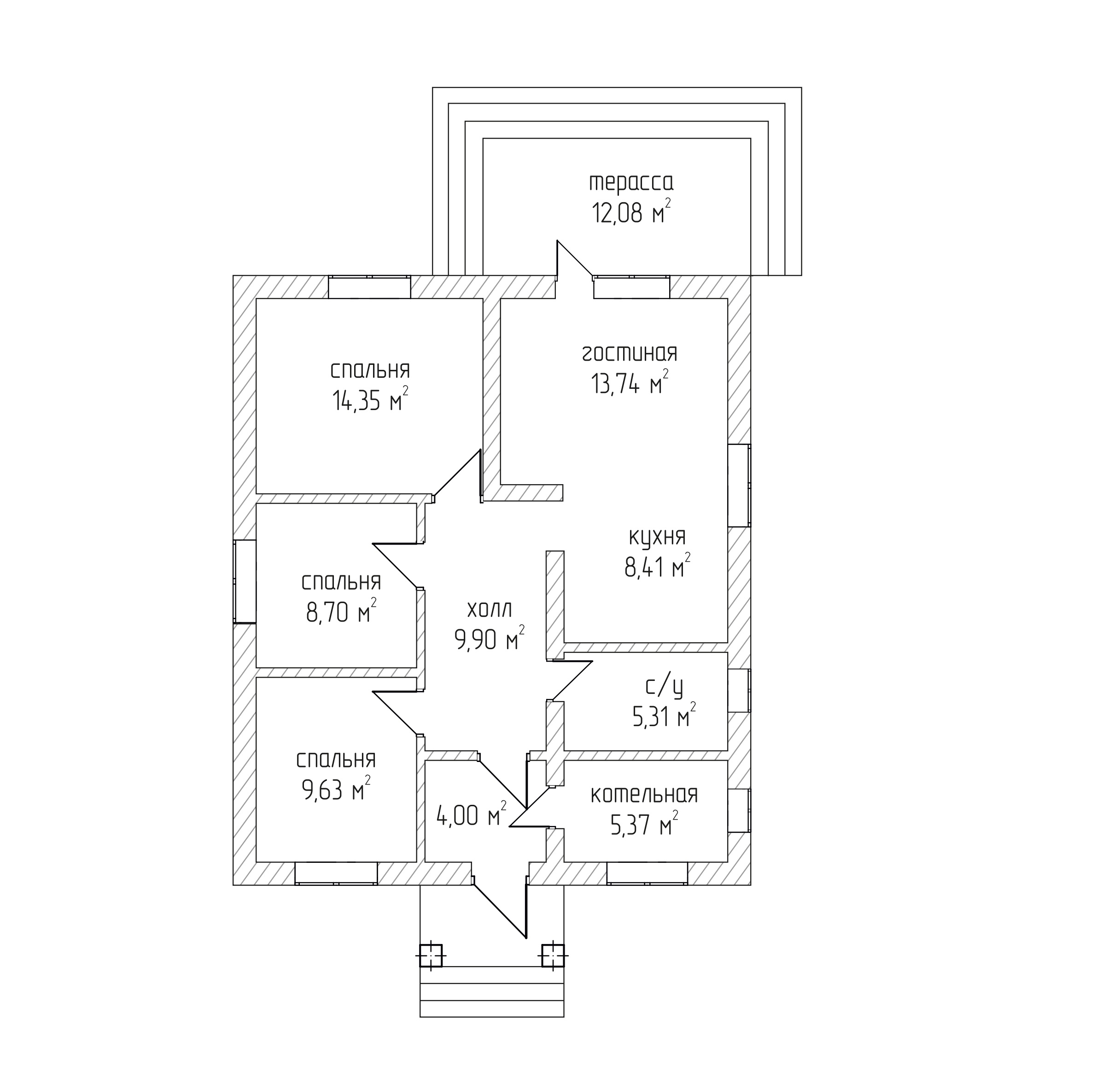 Проект одноэтажного дома Гом из газоблоков 1 этаж / 90 м. кв