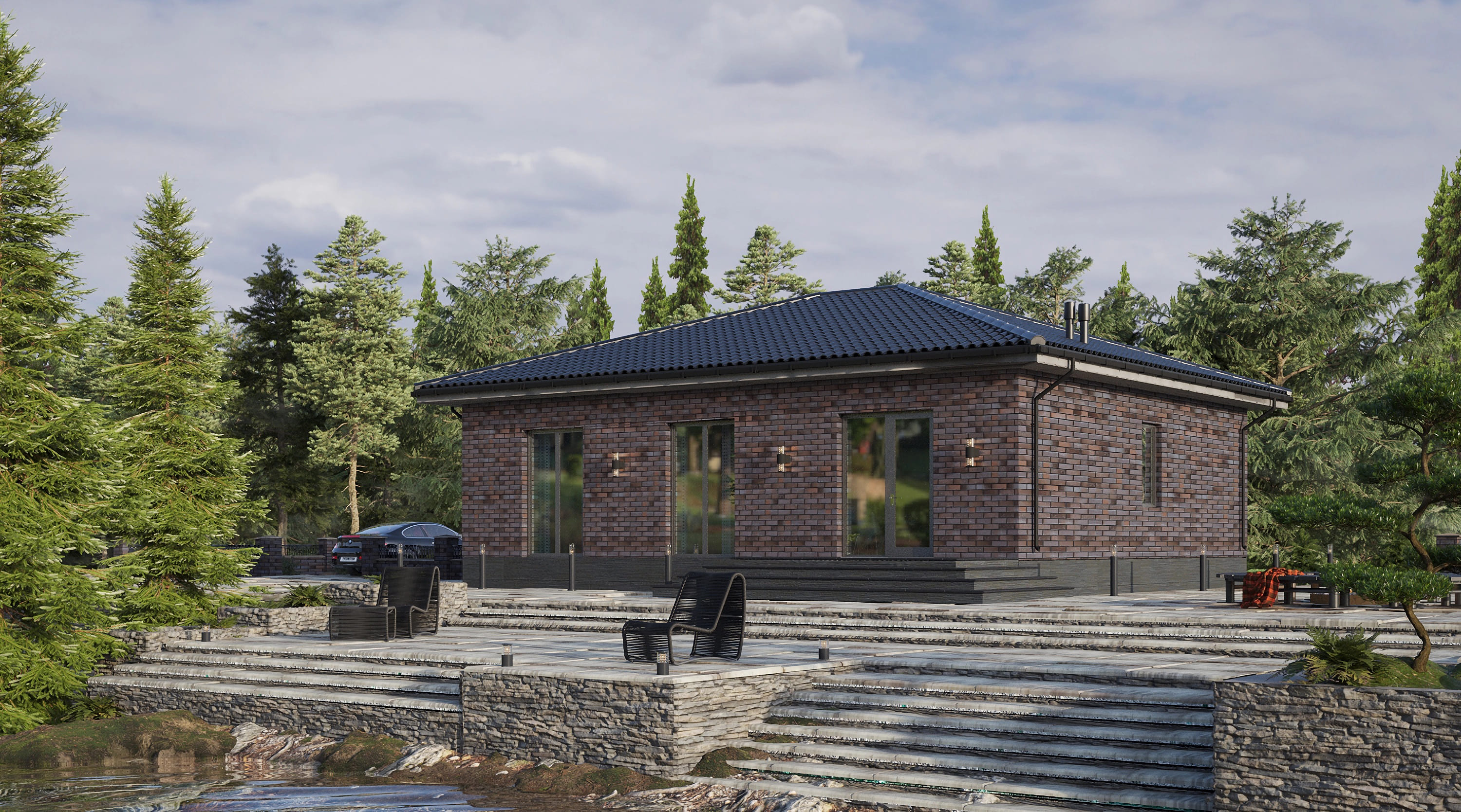 - Стиль, разновидность: Дом с панорамными окнами во французском стиле