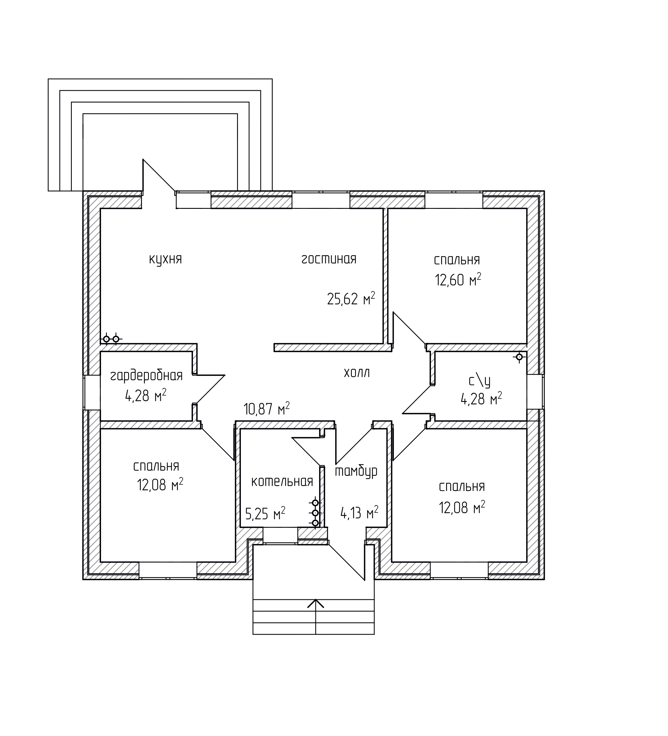 - Тип кровли: Дома с четырехскатной крышей (вальмовой)
