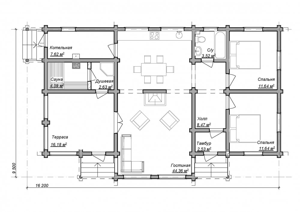Проект одноэтажного дома Одноэтажный деревянный дом Гостиный двор-113