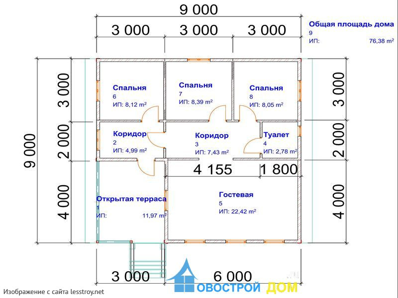 - Общая площадь: 76 м2