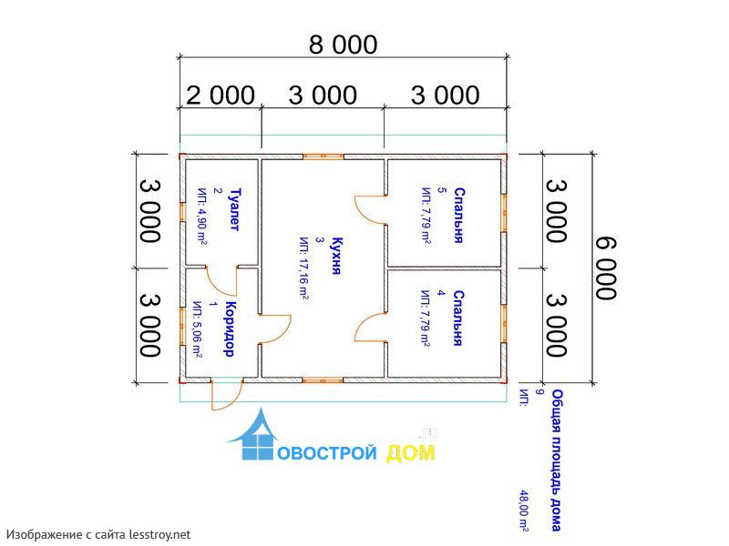 - Общая площадь: 48 м2