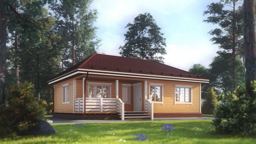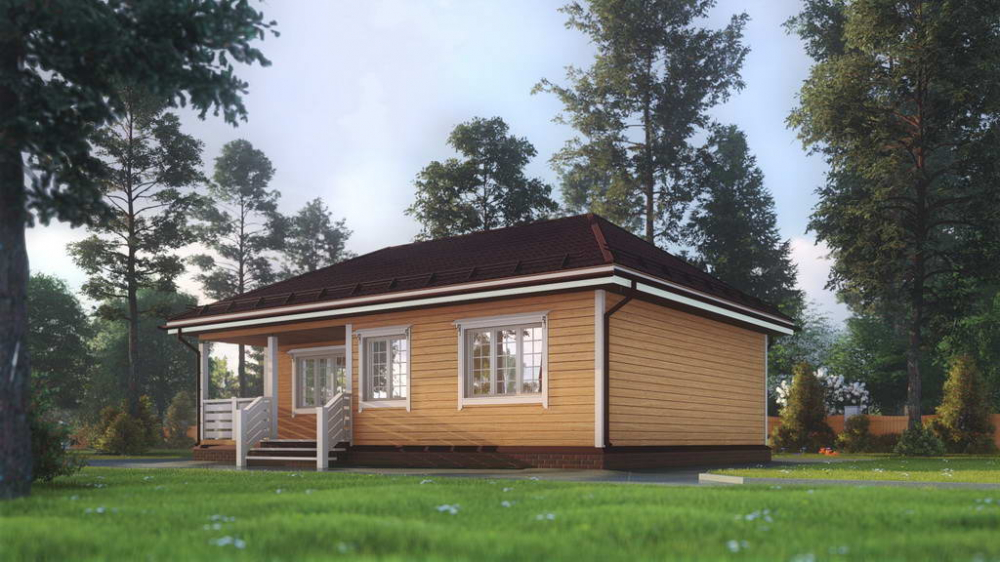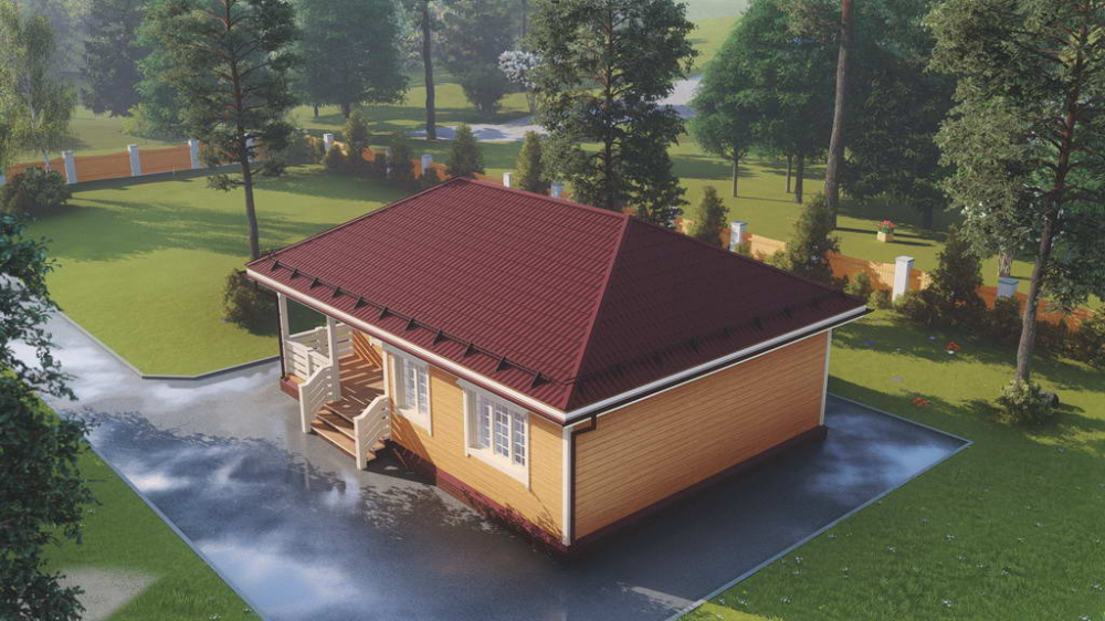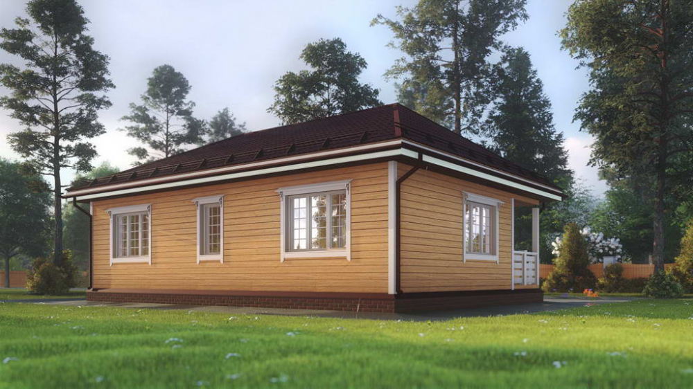 Проект одноэтажного дома Одноэтажный дом из бруса под усадку 8х11 с вальмовой крышей
